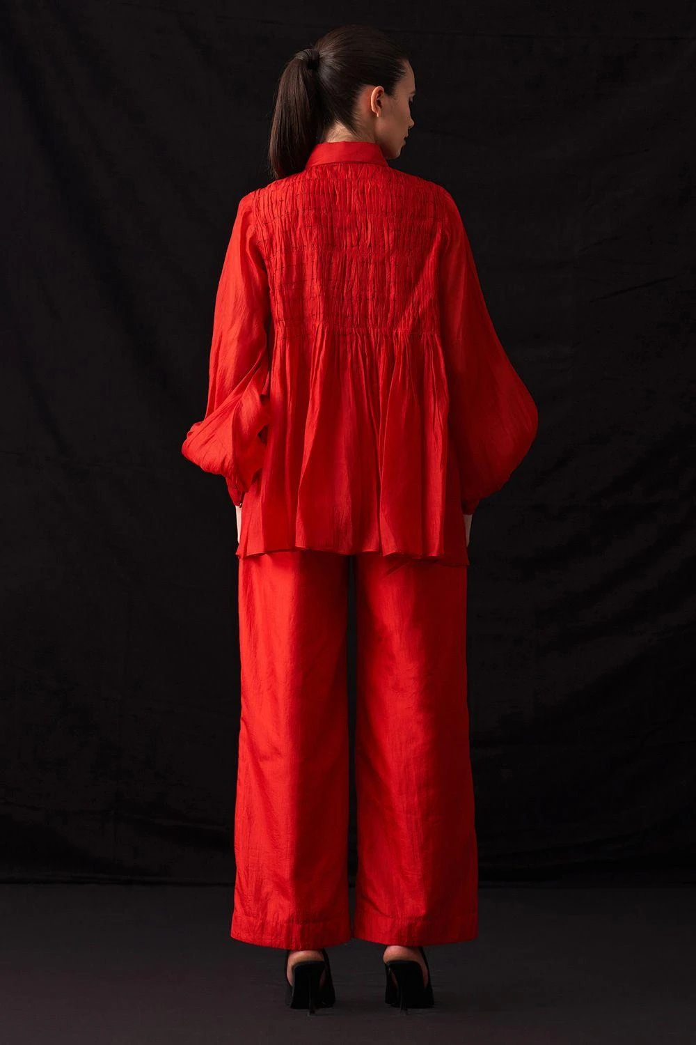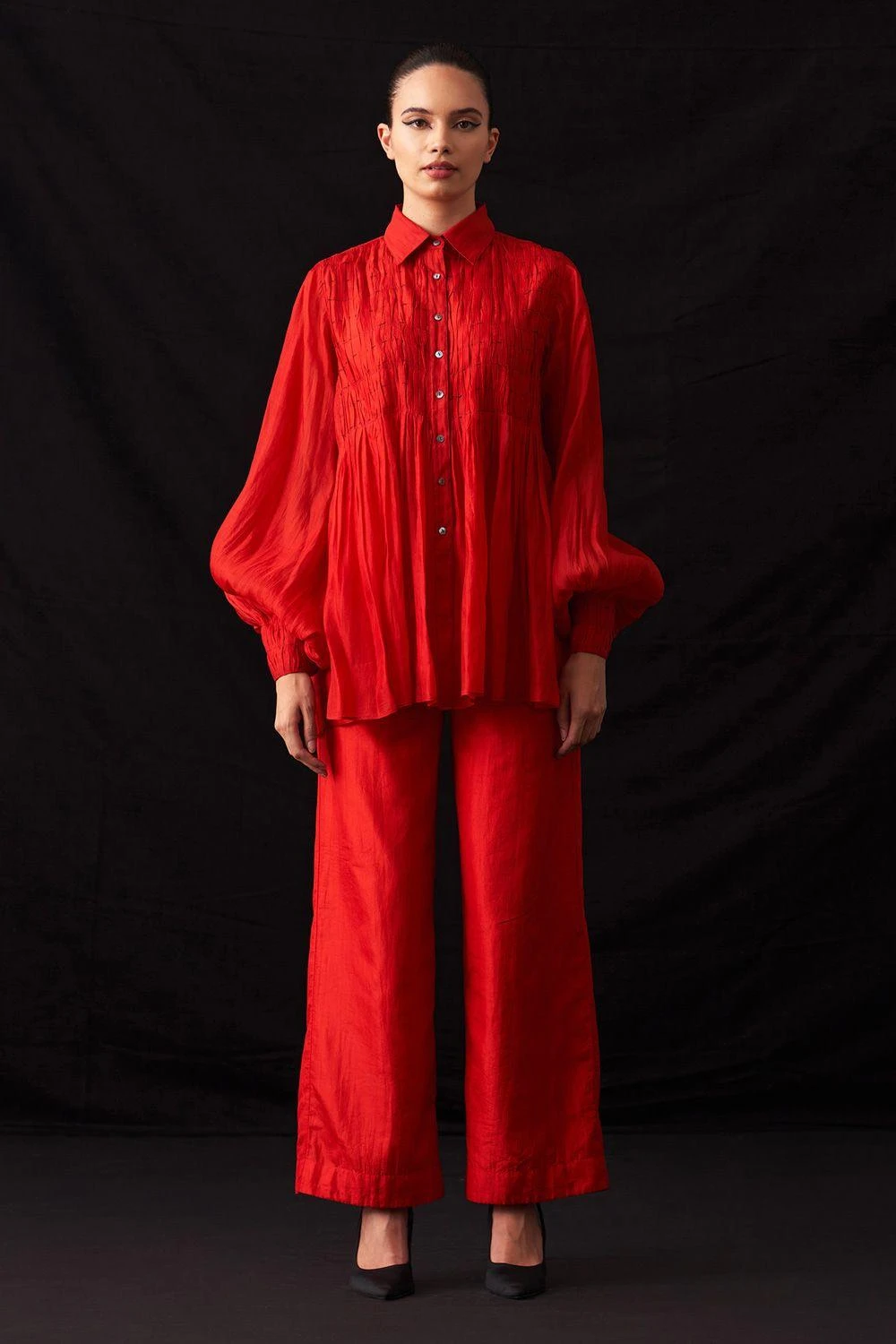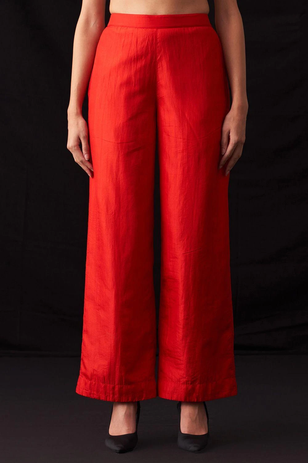 Chic and comfortable, these red silk woven straight-leg trousers feature a semi-elasticated waist. Perfect for both casual outings and polished work ensembles, they effortlessly combine style and ease for a versatile wardrobe essential.