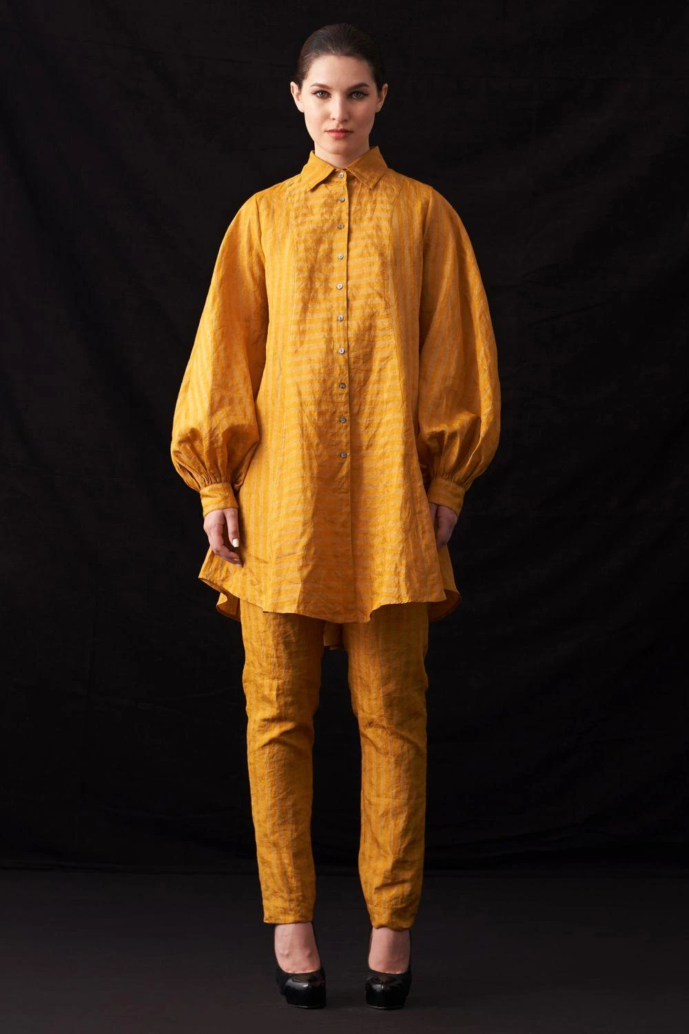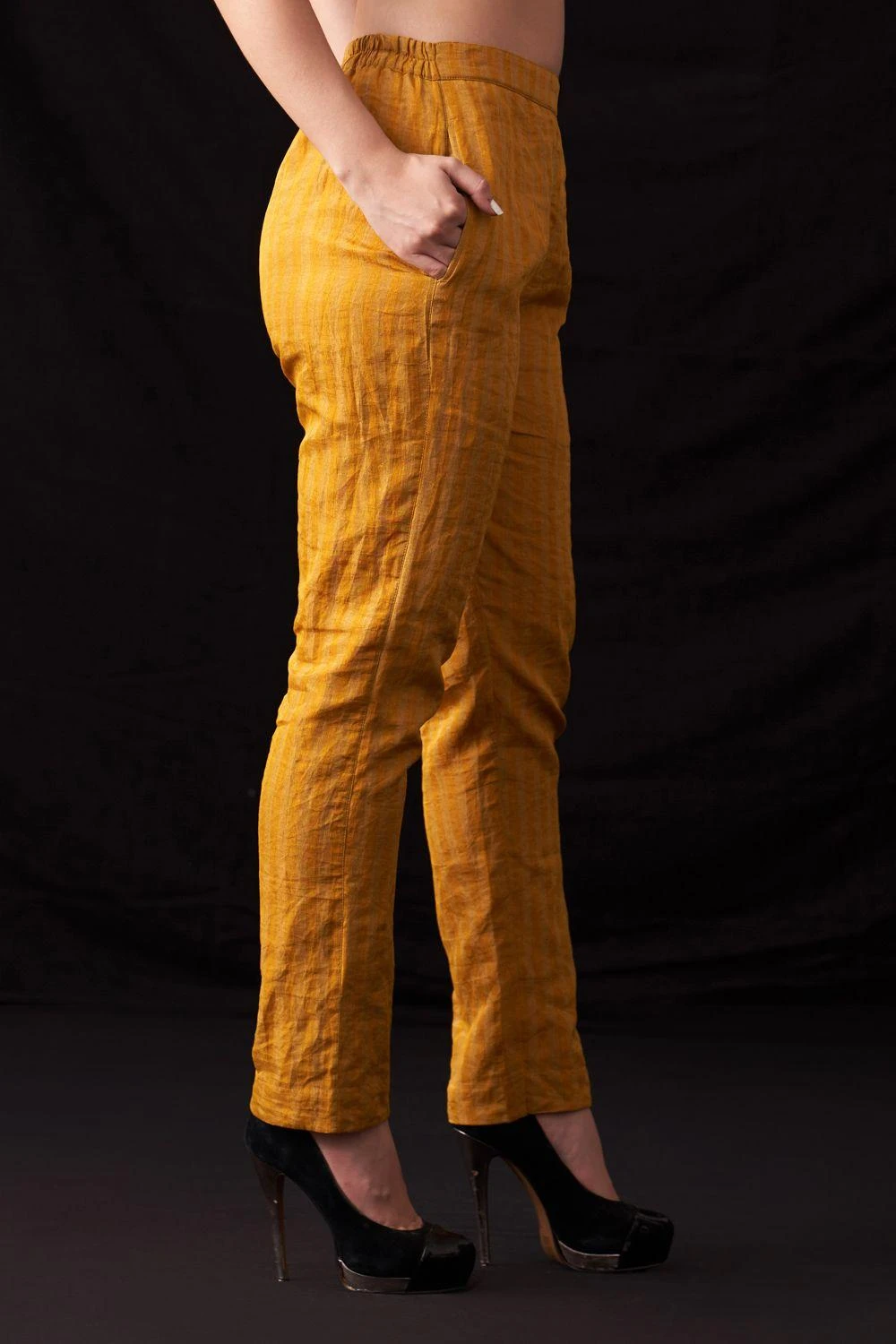 Elevate your wardrobe with these meticulously crafted hand-woven cotton trousers, graced by stunning zari metallic stripes. Comfort meets luxury with its soft cotton lining, ensuring effortless elegance.