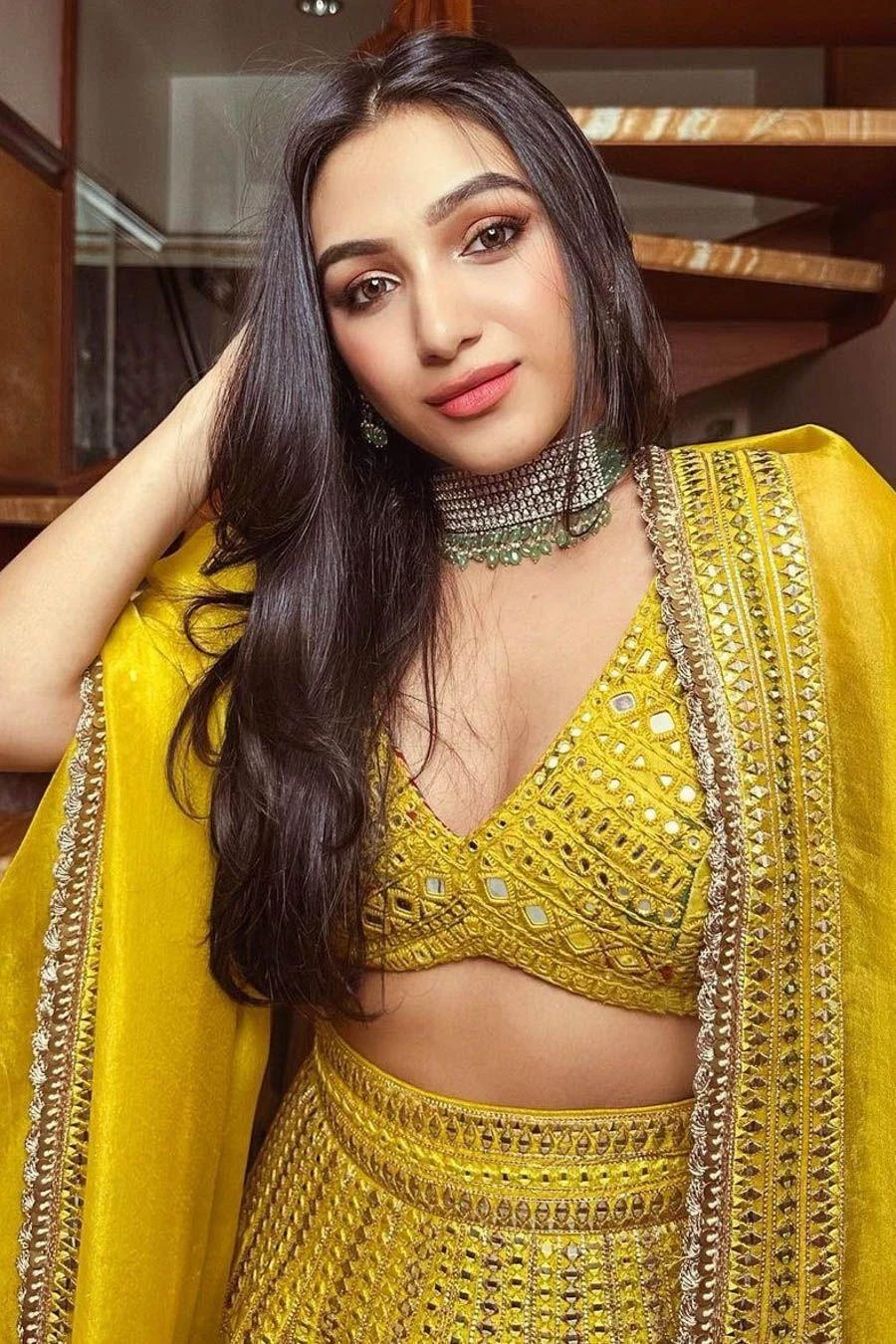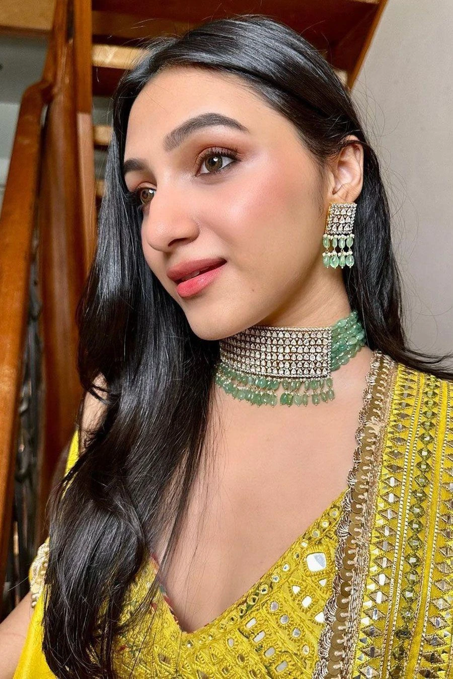 Look effortlessly stylish with this lehenga set. Crafted in silk, this set features a mirror work kalamkari lehenga paired with an equally versatile blouse & an embellished dupatta.