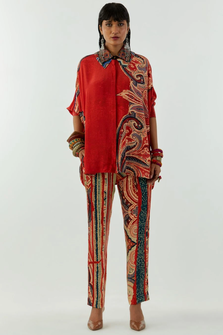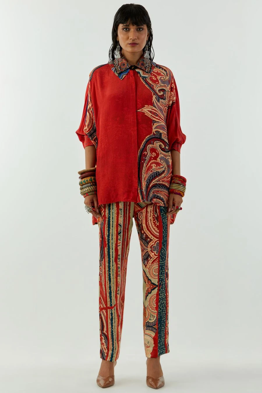 Maximise the life of your wardrobe with this exquisite shirt. Crafted in natural crepe, this ambi print mandala shirt features a zari and marodi embroidered. Pair it with printed draped trousers from the collection to complete the set.