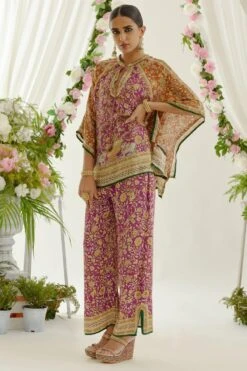 This artsy tie dye kaftan is set in rich earthy tones. Cut in a luxe silk fabric, this piece is perfect for casual evening events. Style this piece with a choker or statement earrings for an effortlessly chic look.