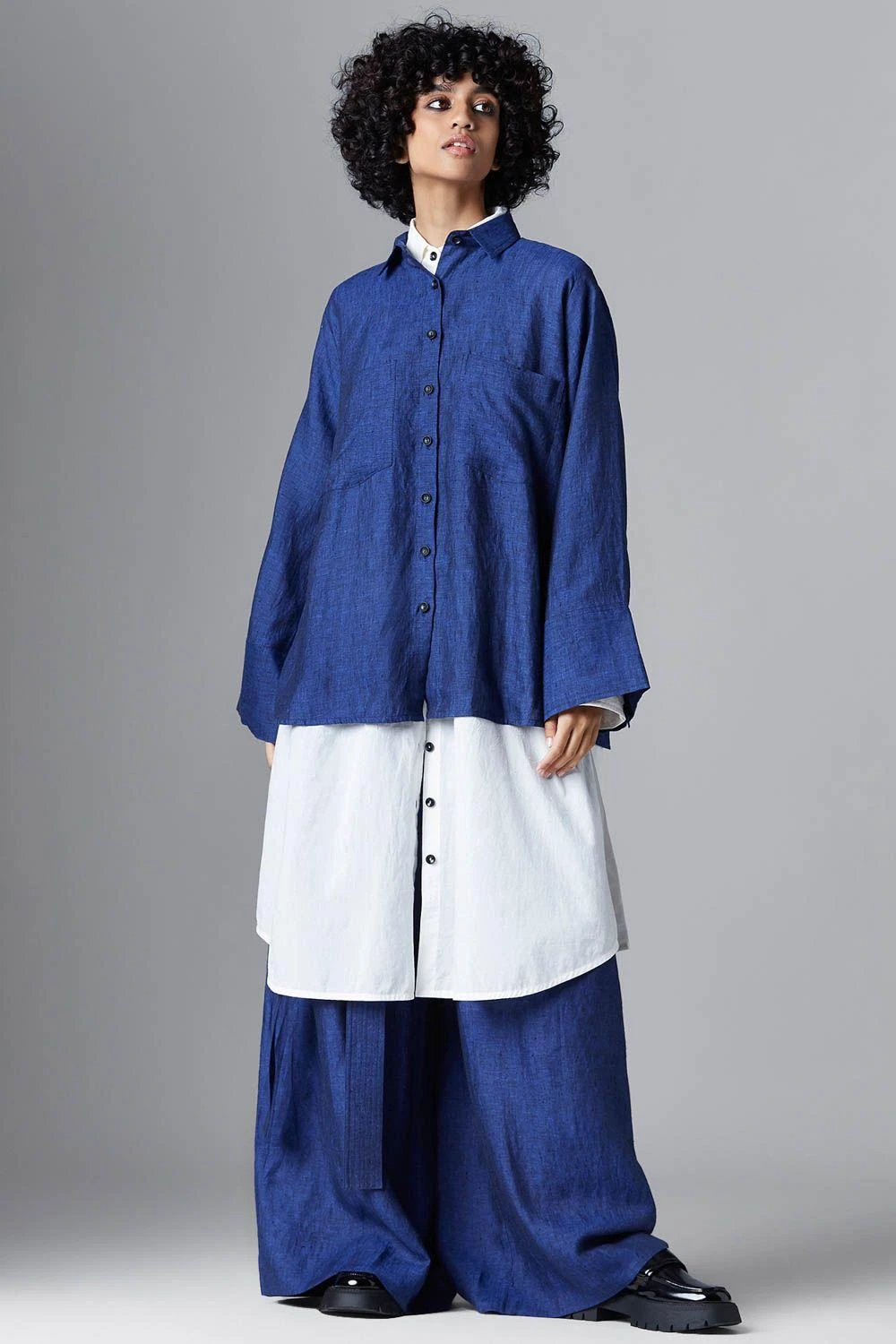 With the perfect amount of style & comfort, this shirt is perfect for a day out. Crafted in linen, this shirt features A-line sleeves and patch pockets at the chest. Additionally, it has a half button-down placket at the back.
