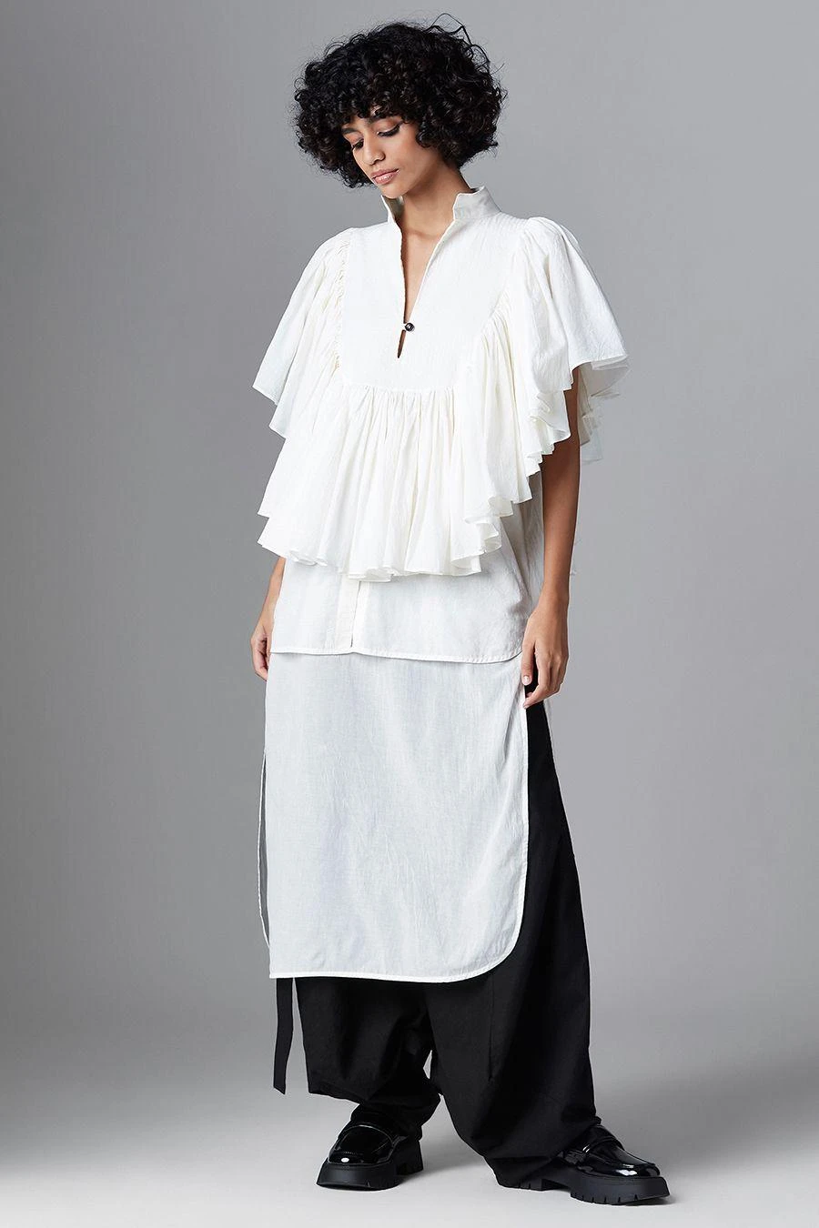 Chola White Long Frill Shirt