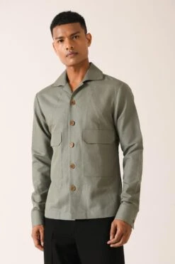 Dhruv Vaish Sage Green Flap Pocket Shirt