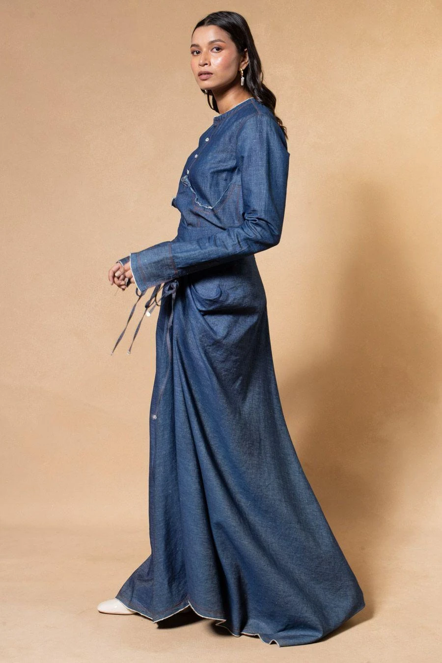 Behold the captivating allure of this denim top, a veritable masterpiece that encapsulates the very essence of casual chic. Boasting a voluminous silhouette that drapes elegantly over the body, this top is an exquisite amalgamation of comfort & style
