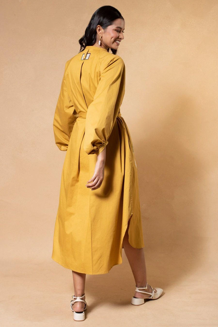 Crafted with attention to detail, this dress is a pinnacle of elevated minimalism. The A-line silhouette effortlessly accentuates the feminine form, gracefully flaring out from the waist & imbuing the garment with a sense of timeless elegance