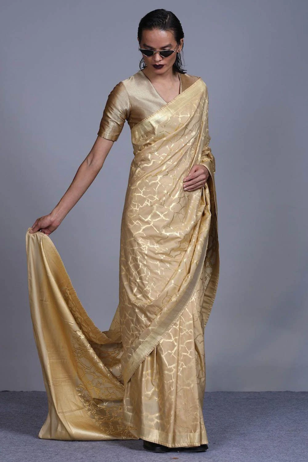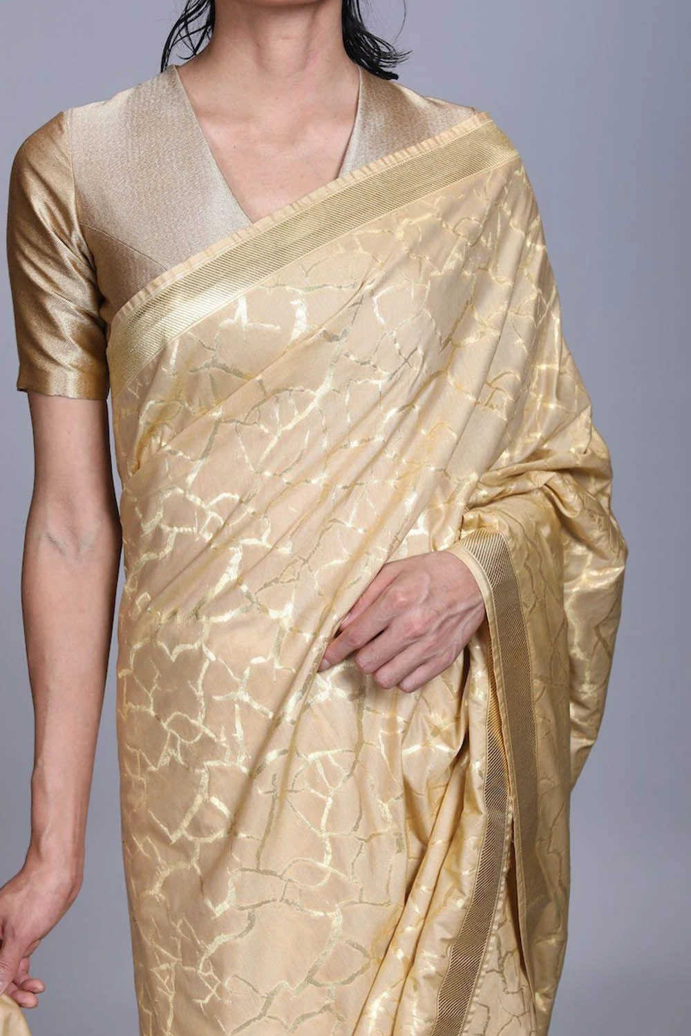 Hemang Agrawal Gold V Neck Drill Blouse