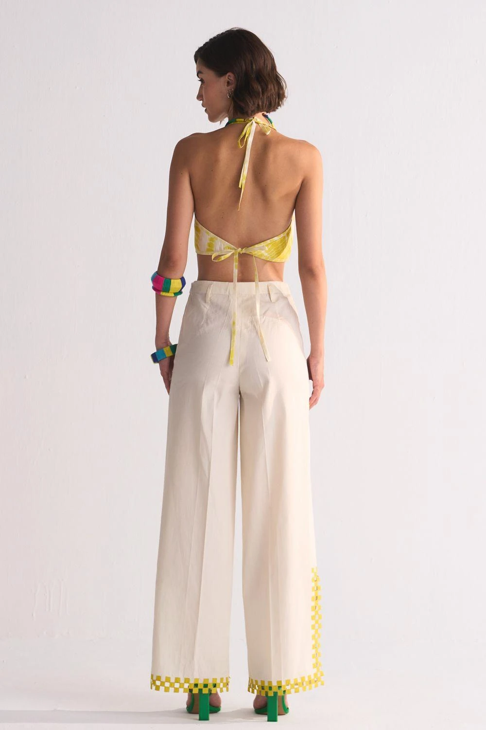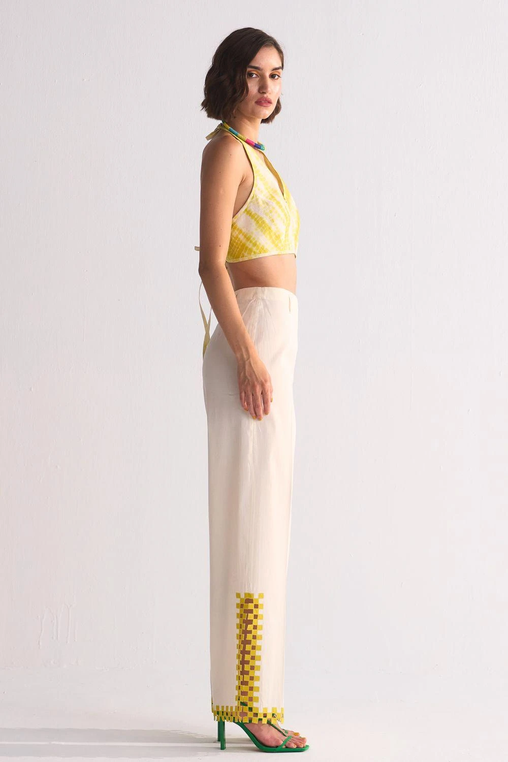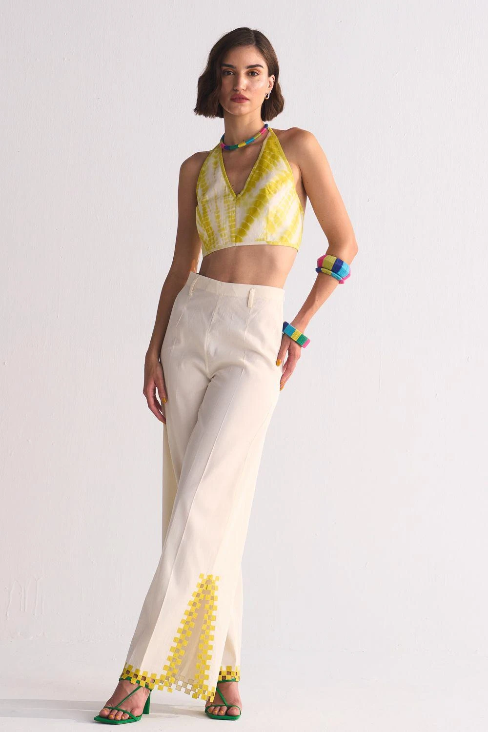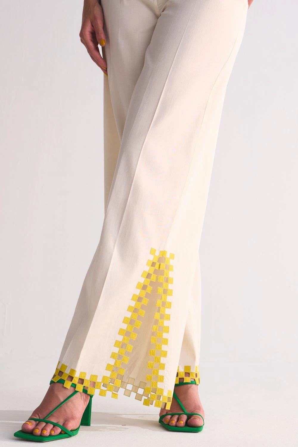 Indulge in comfort and style with these elasticated cutwork straight pants, a chic addition to your wardrobe. Effortlessly versatile, these pants elevate your look with a touch of understated elegance.