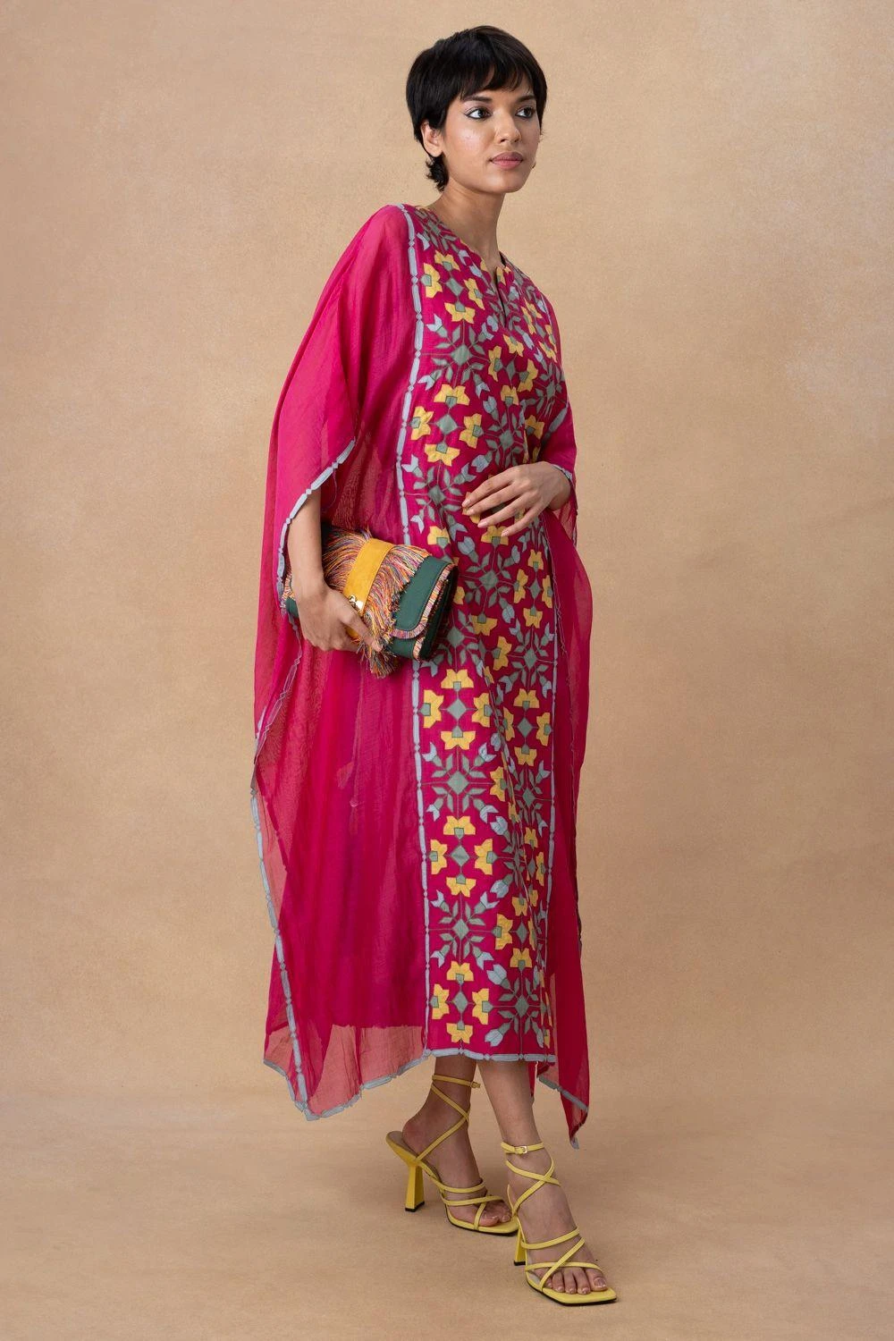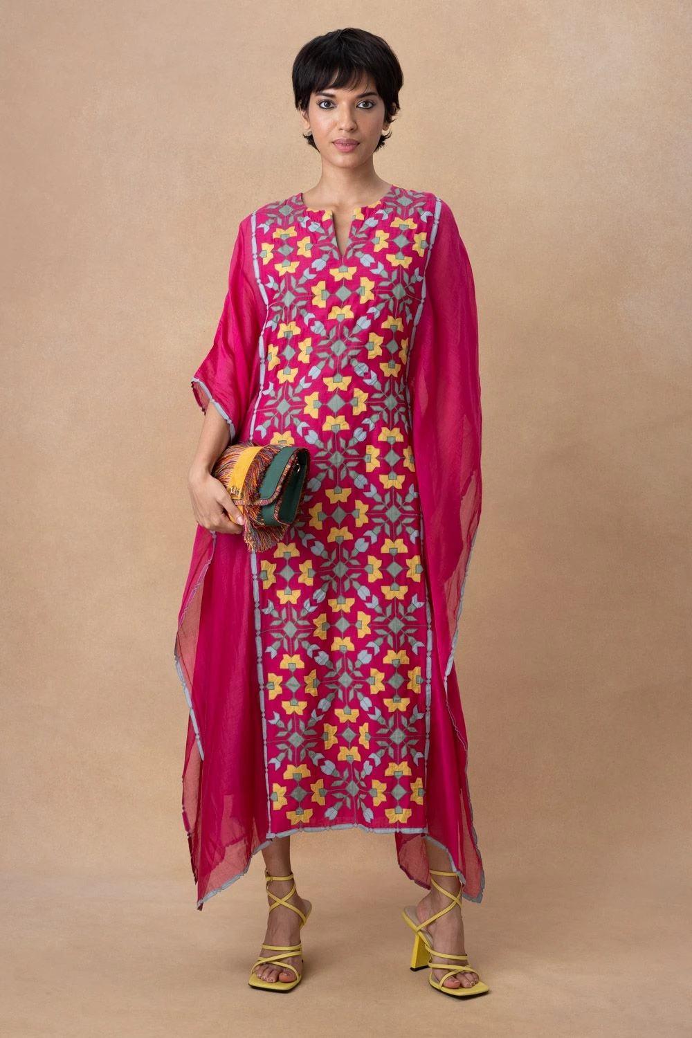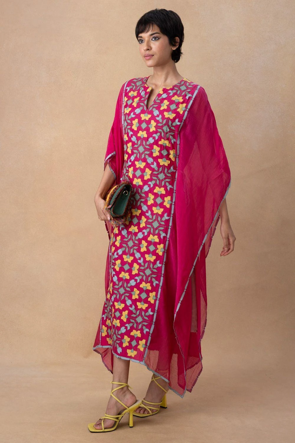 Elevate your style with the Pop Pink Kaftan. Meticulously designed, it exudes a vibrant and sophisticated look. This elegant piece is perfect for making a statement on special occasions, adding a touch of timeless charm to your wardrobe.