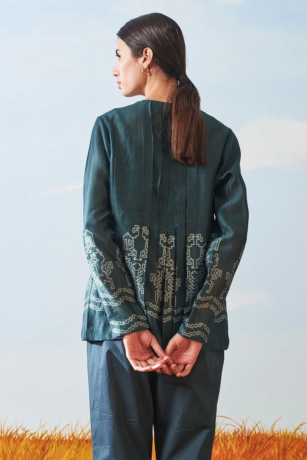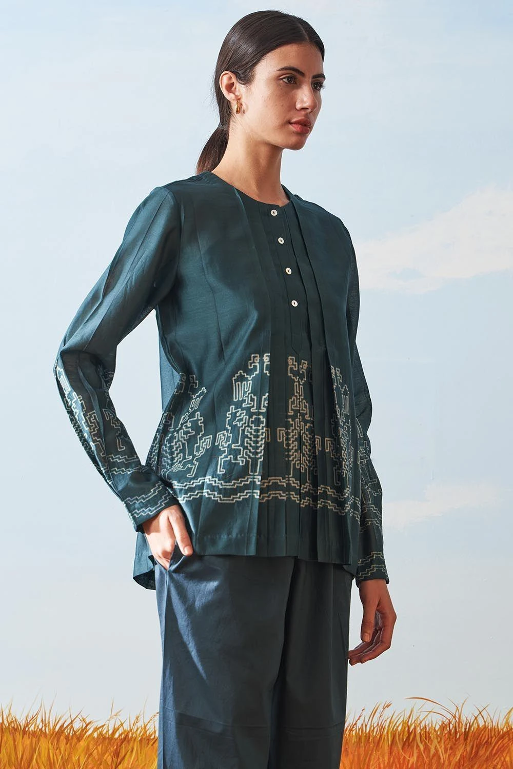 Ikai Teal Shibori Pleated Top