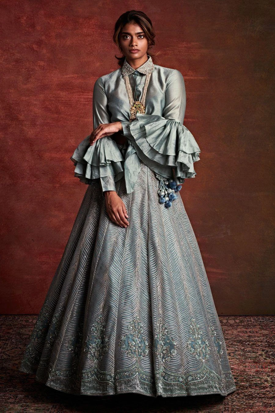 Add this ethereal ensemble to your wedding trousseau for an elegant look. The lehenga is crafted in net which brings opulence to this outfit & the painstaking zardosi embroidery graces it like nothing else. The ensemble comes with a peplum.