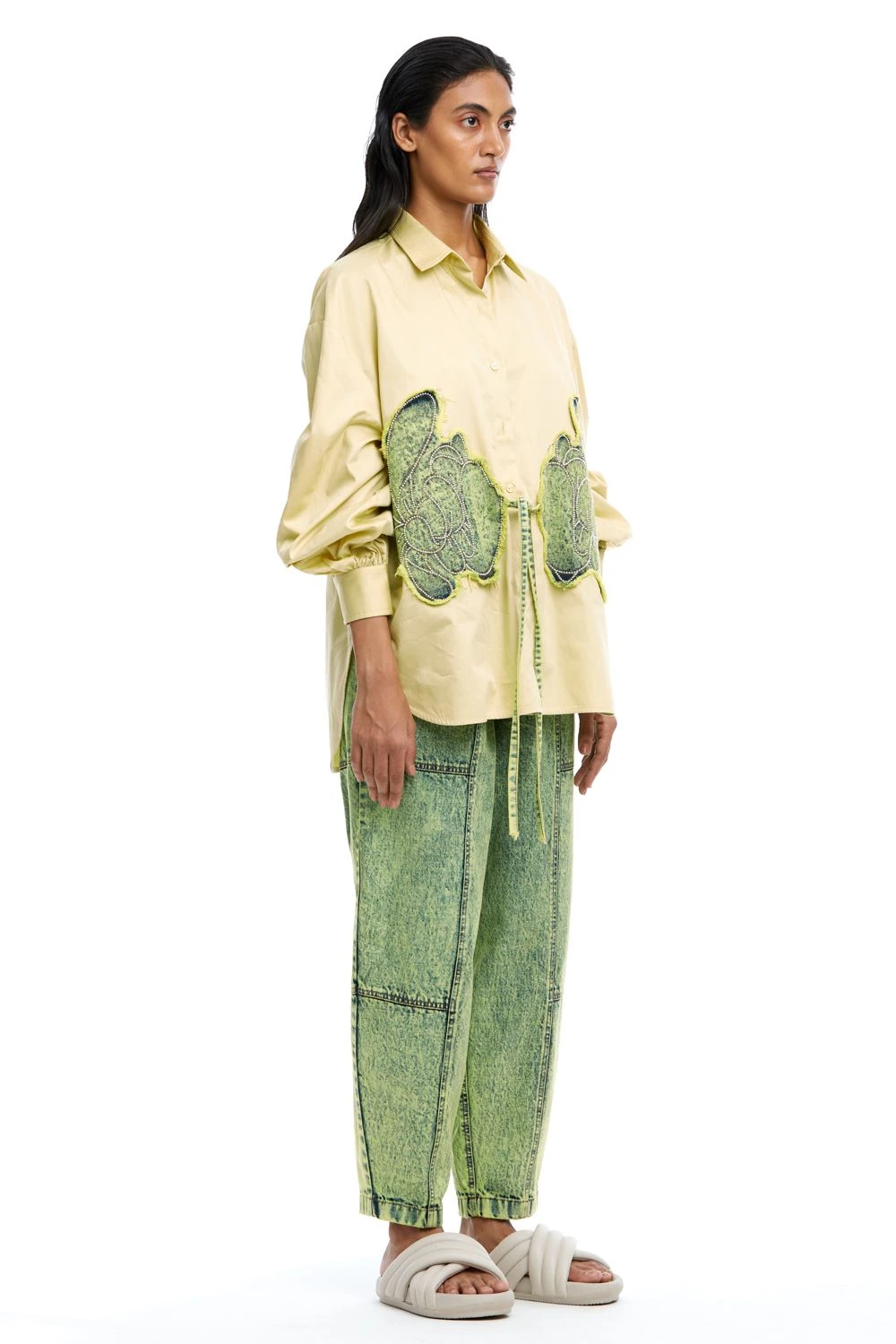 Experience timeless elegance with these Barrel-Fit Denim Pants. The epitome of classic style, these pants offer a versatile addition to your wardrobe for an effortlessly chic look.