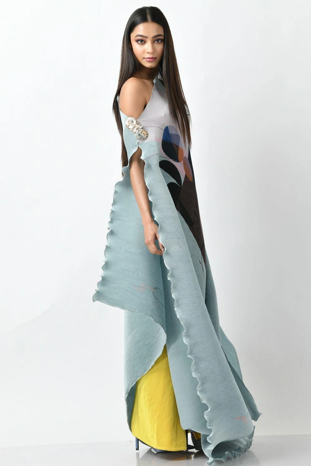 These chic yellow pleated wide legged pants are stylish & versatile. Style this over a kaftan or tunic to add colour to your look.