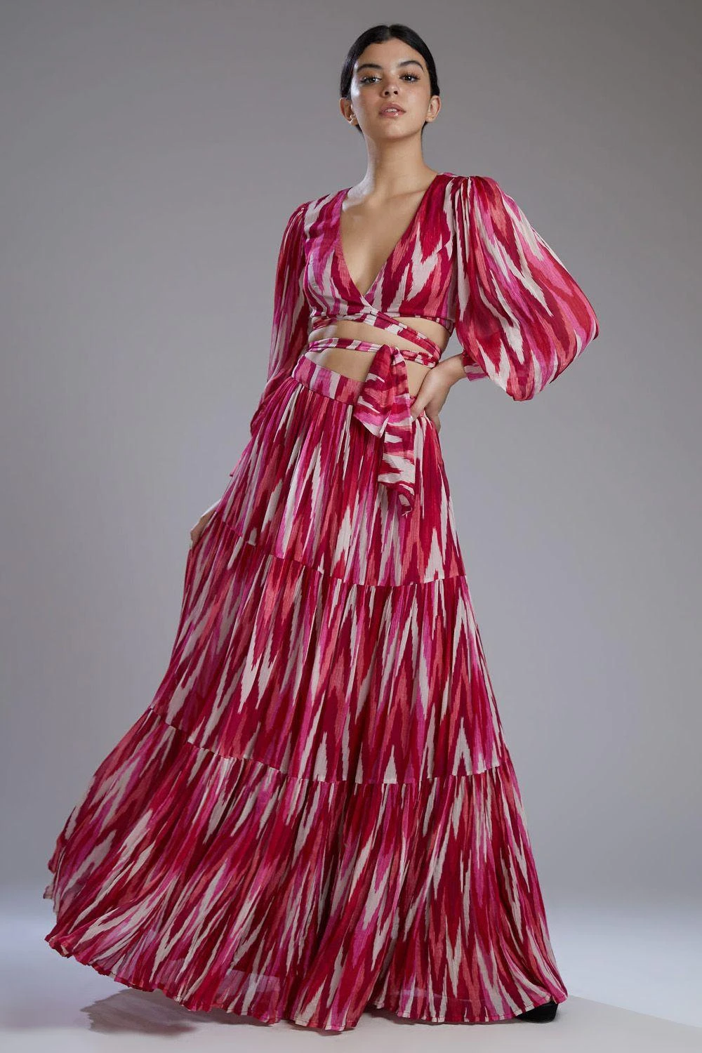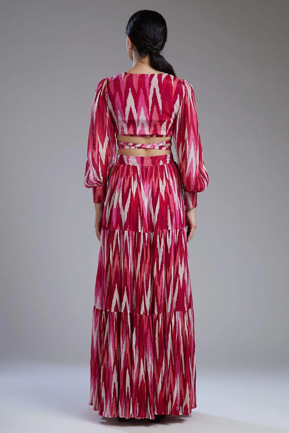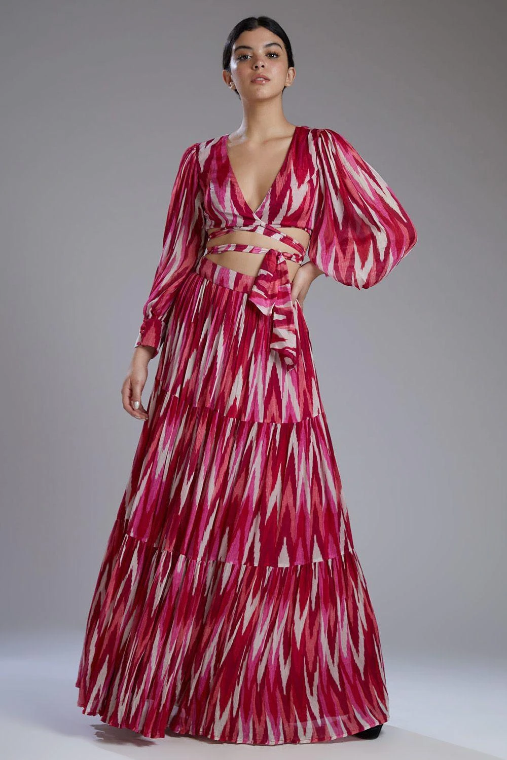 KoAi Chiffon White & Pink Dabu Zig Zag Skirt