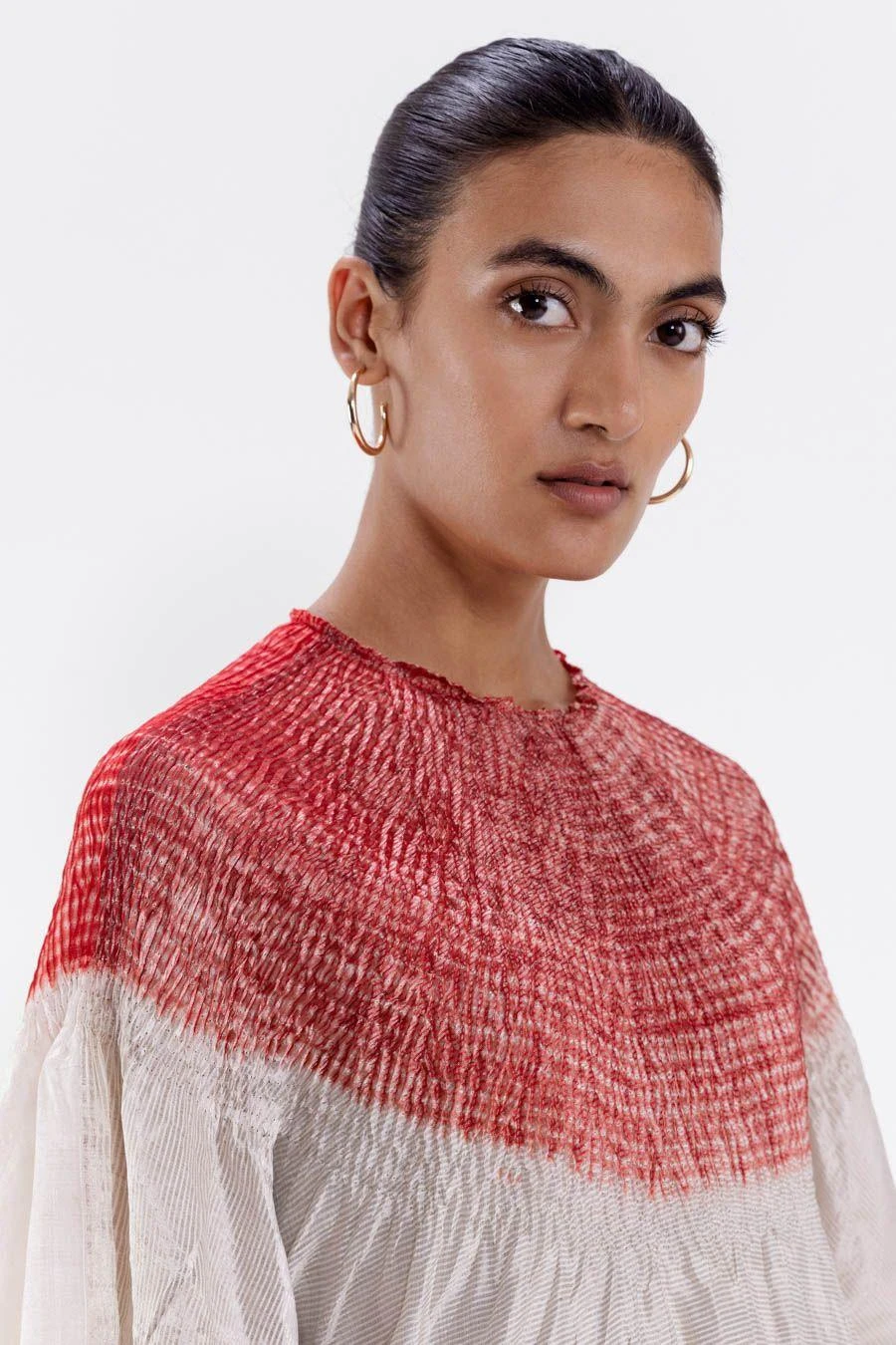 Indulge in effortless luxury with this striped metallic silk kaftan, featuring a shibori neckline dyed. This statement piece is crafted with the utmost care & attention to detail, ensuring a flawless finish that exudes sophistication and elegance.