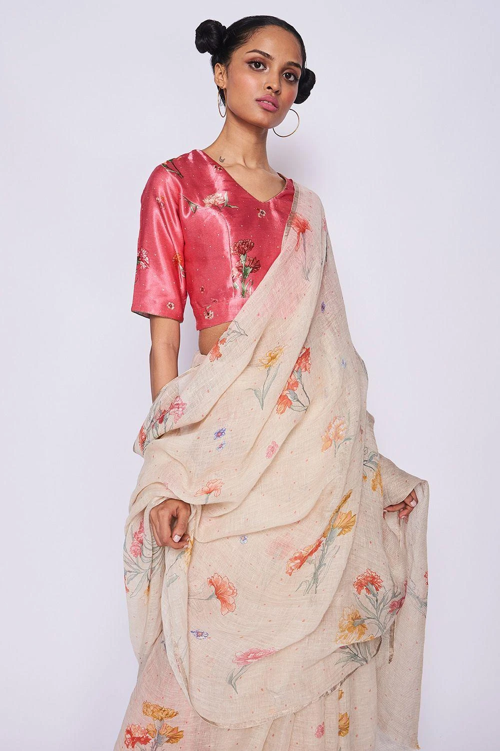 Nadiya Paar Pink Carnation Satin Blouse