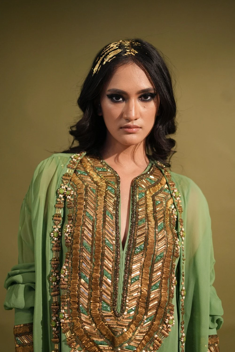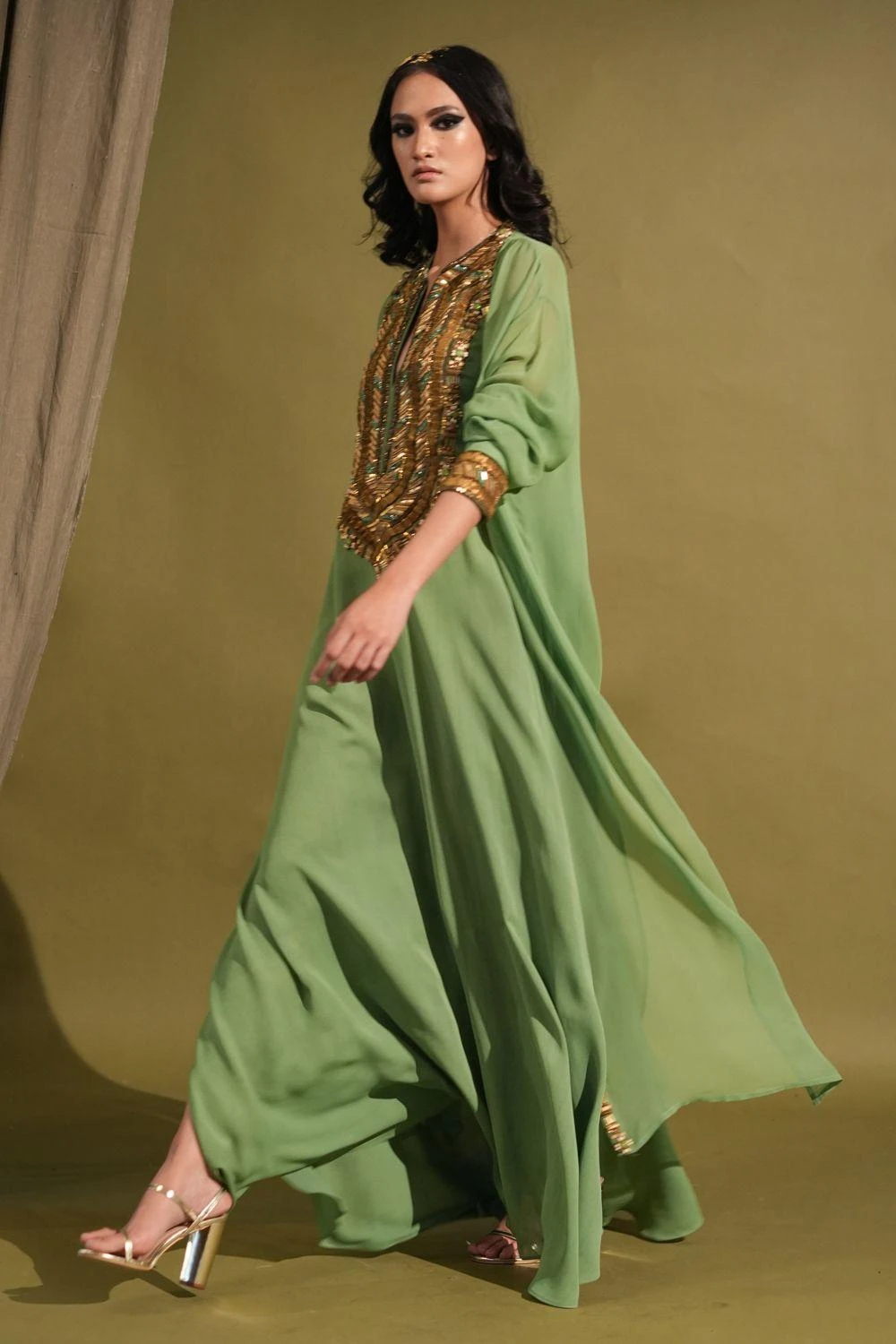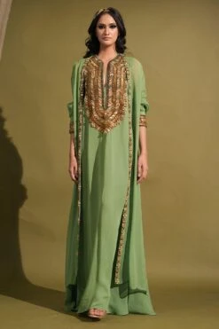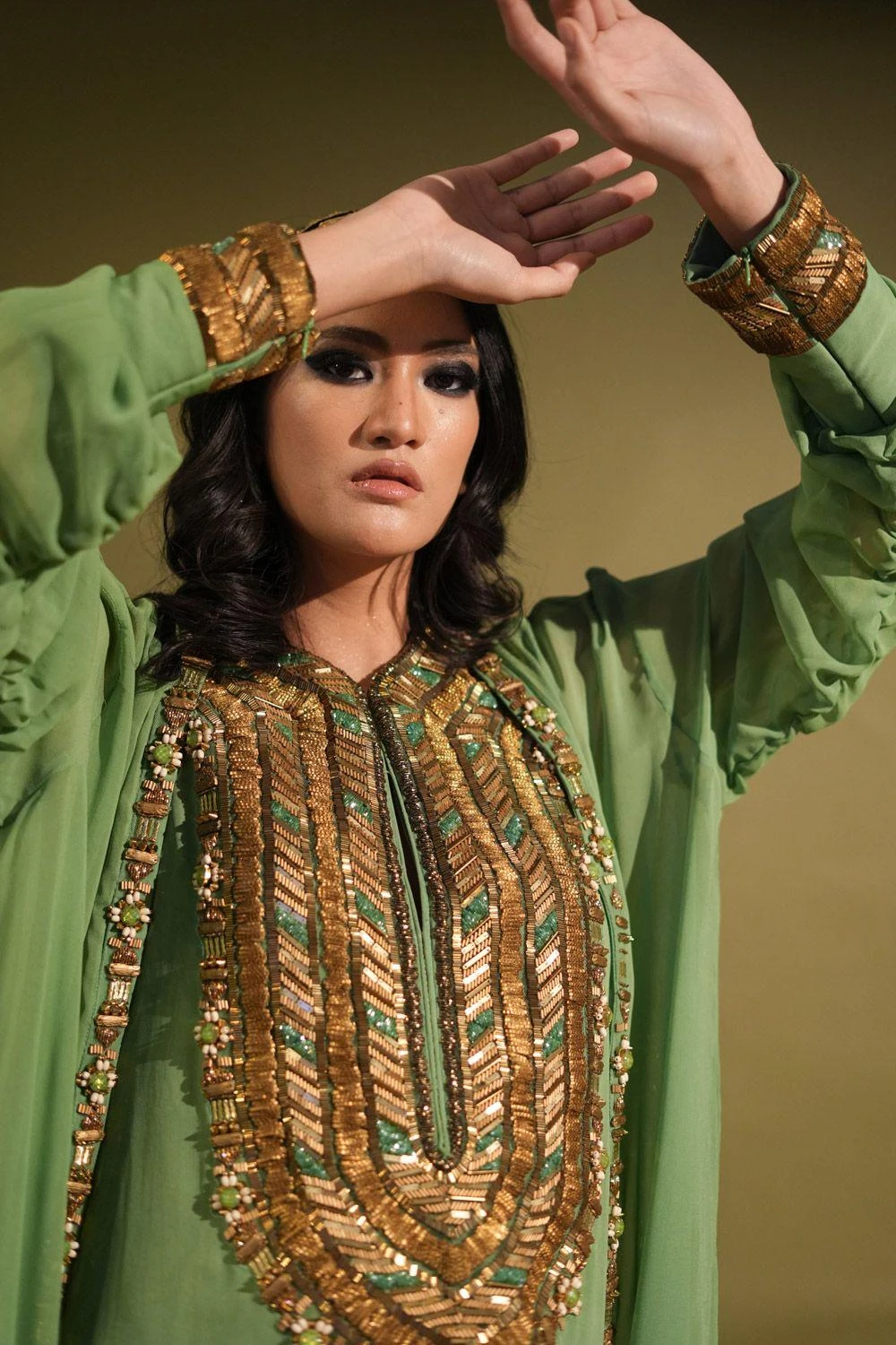 Elevate your style with this elegant Jade Maxi Dress and Jacket, adorned with intricate aged gold embellishments. It’s a timeless ensemble that exudes sophistication and charm, perfect for your special occasions.