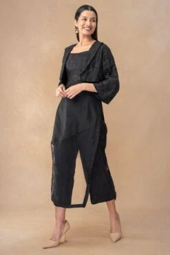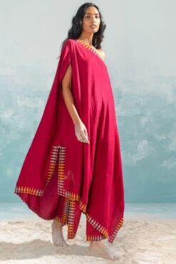 This magenta trippy print skirt is the perfect festive piece, all things fun & glam. It is curated in a sheeted georgette base and offers a voluminous flare. It comes with an embellished belt.