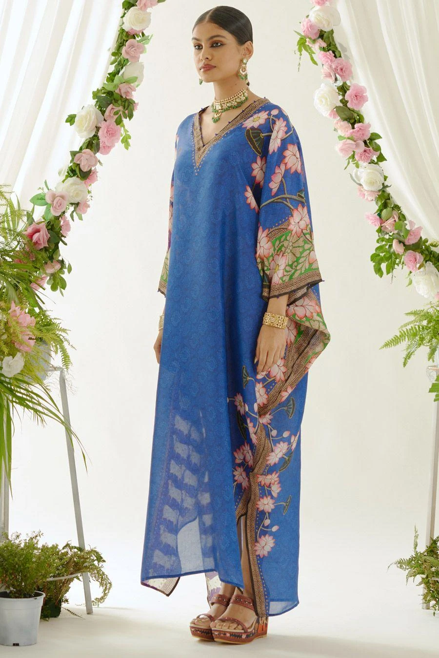 The perfect amalgamation of style and comfort, this kaftan works across occasions. Crafted in silk, this V-neck tunic features a floral print all over with side slits. Style them with coordinating pants from the collection to complete the set.
