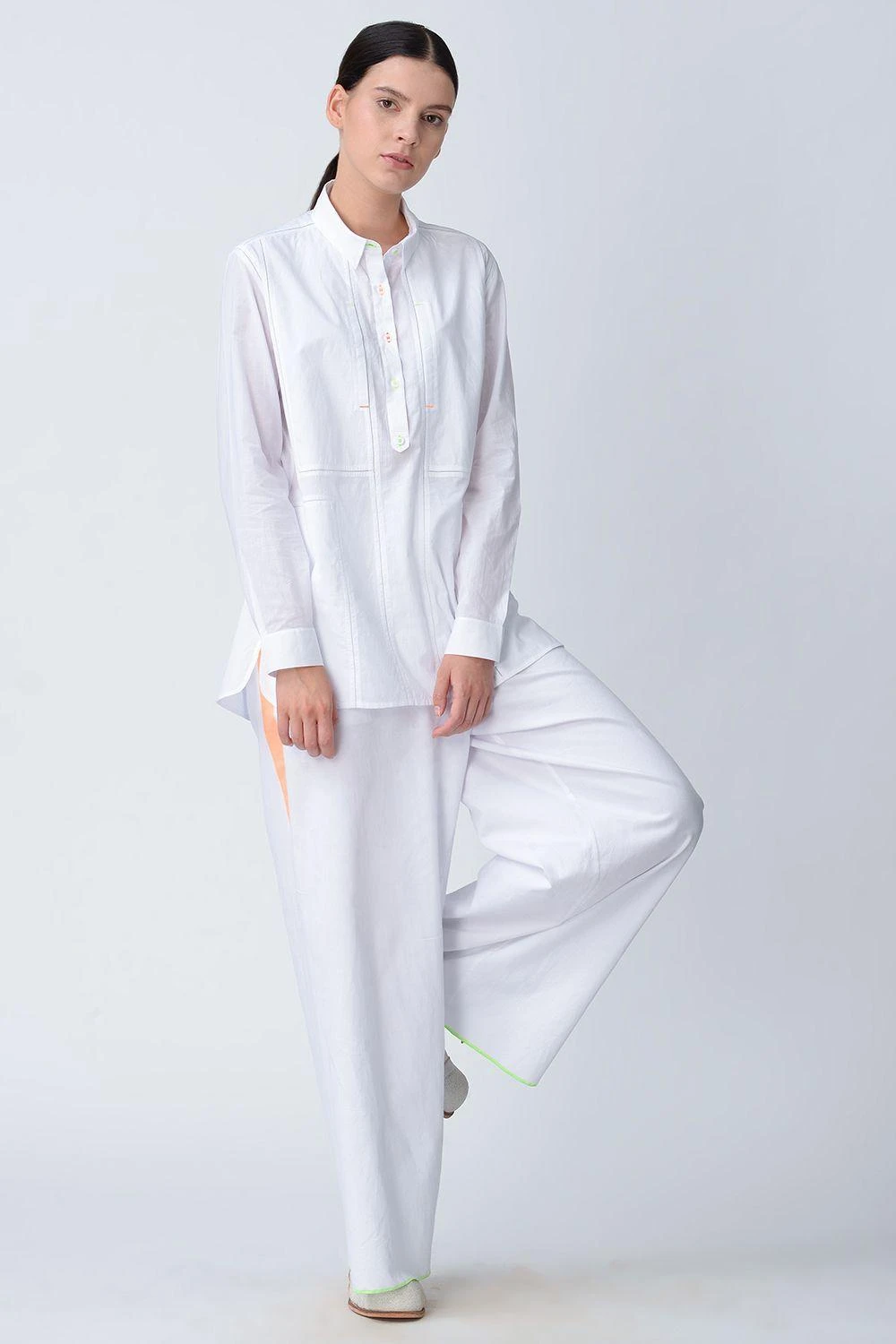 This classic white ladder seam, patchwork shirt should be a wardrobe staple. So easy to wear, you can dress it up for an evening out or keep it casual for the day.