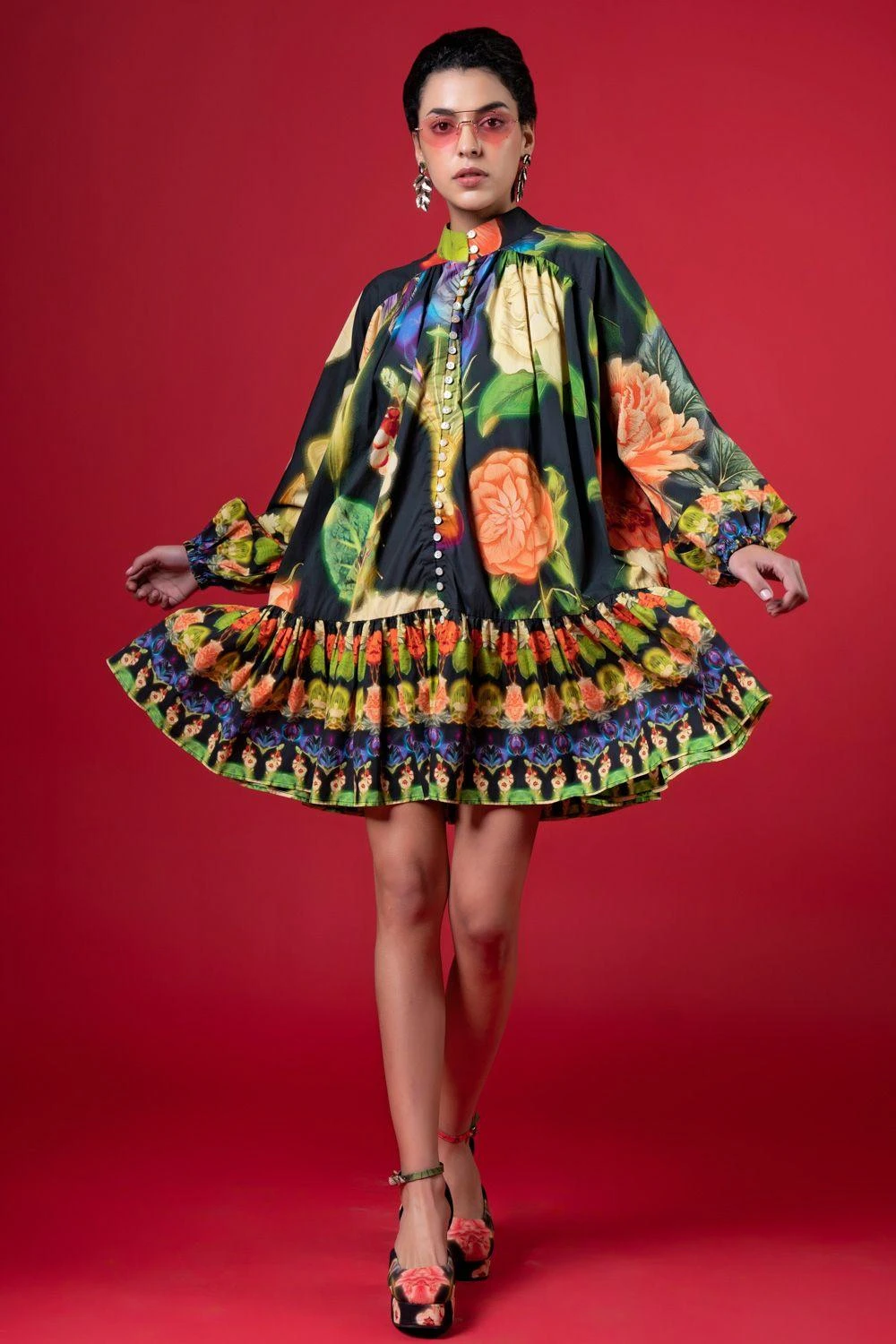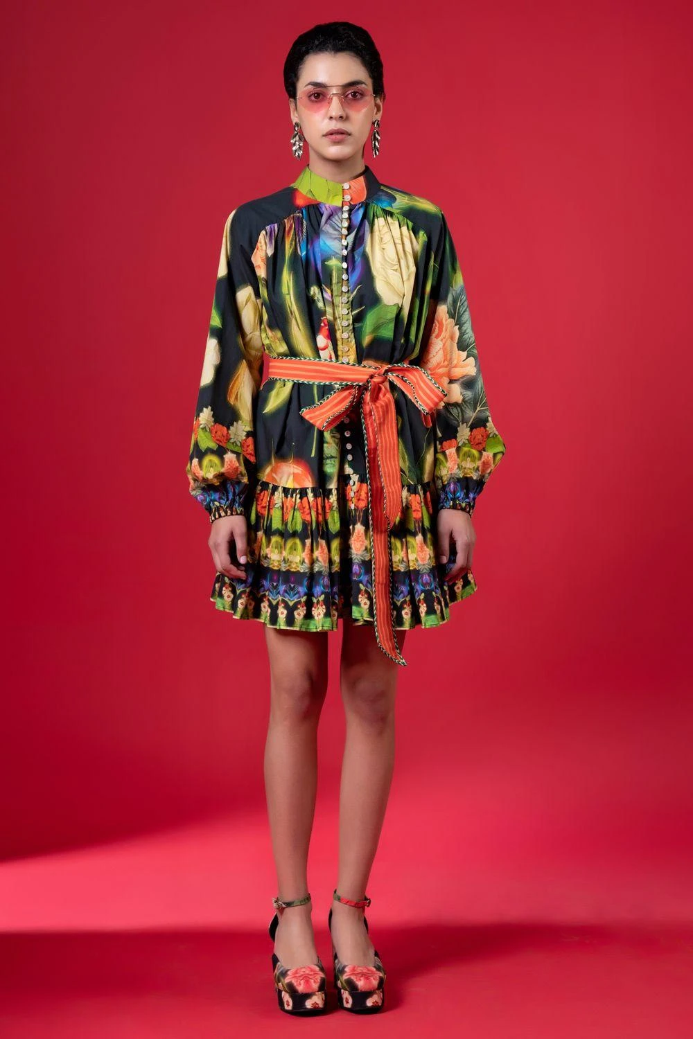 Experience luxury in this floral printed dress adorned with elegant prints & a chic silhouette, projecting stylish highlights. Elevate your look with an elegant belt for upscale events or brunch with elites. Redefine sophistication effortlessly.
