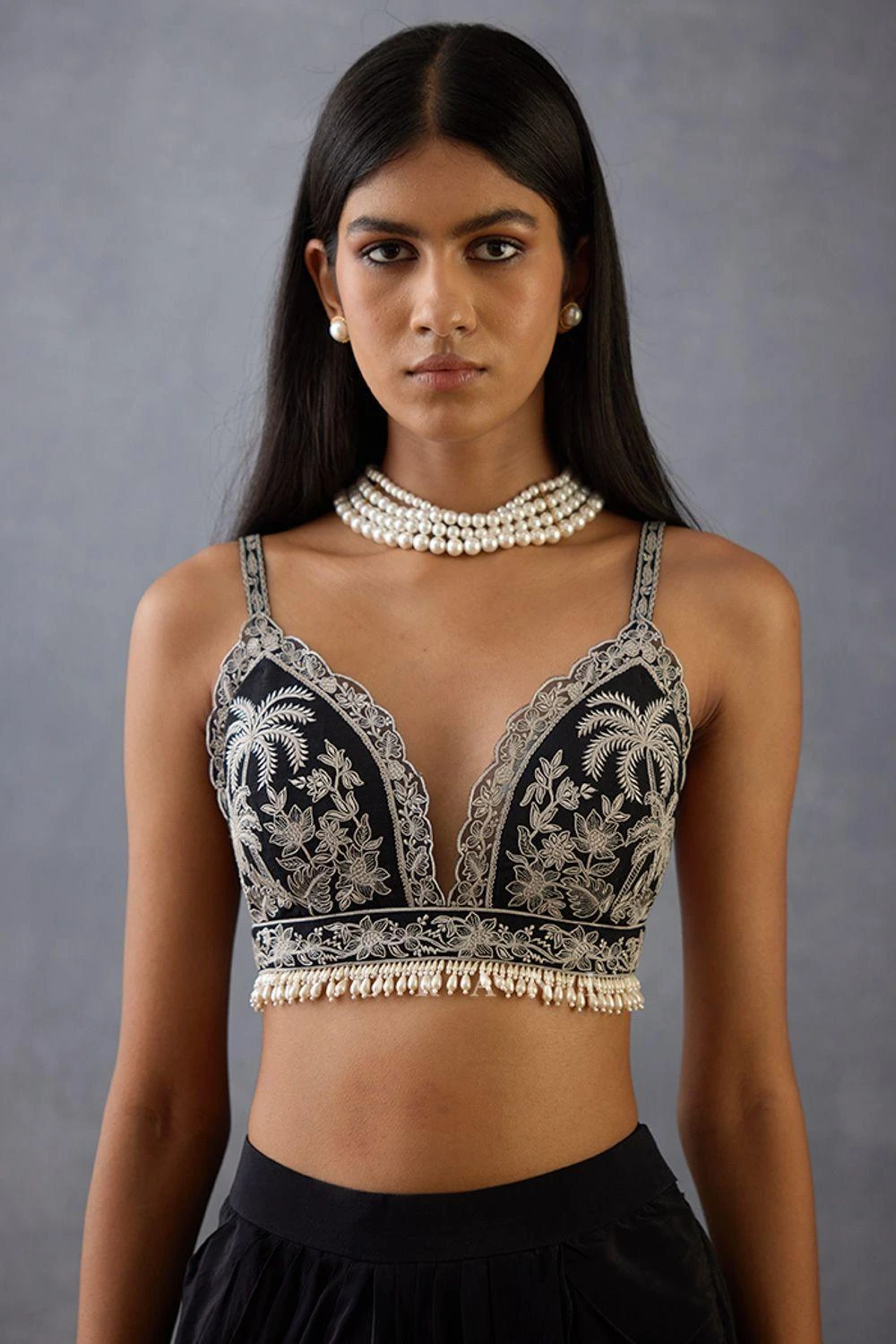 Elevate your ensemble with this Raat Rani Idika Blouse, a testament to timeless elegance and intricate craftsmanship. Pair it with a coordinating sari from the collection to complete the set.