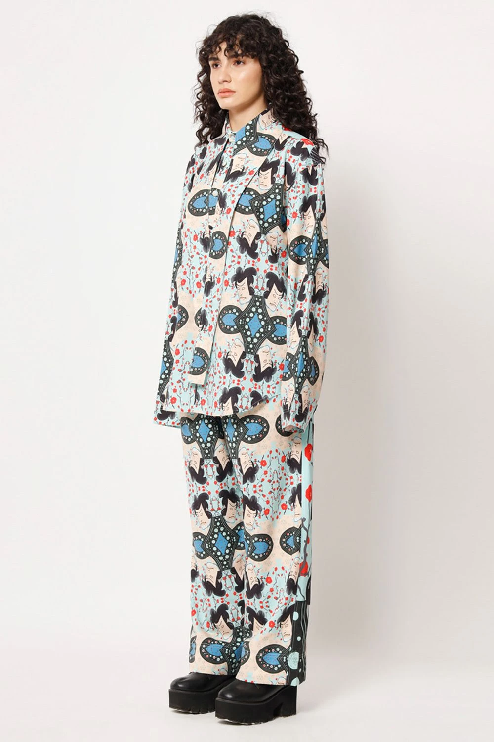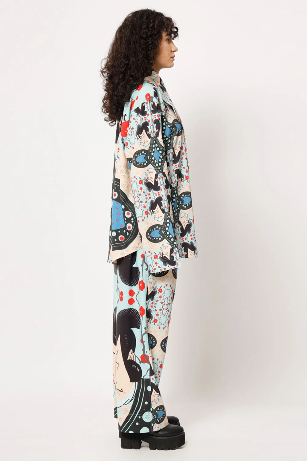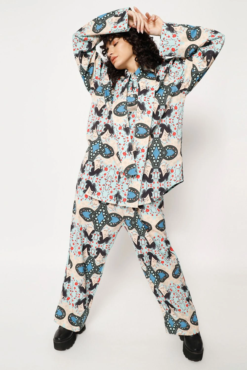 Elevate your casual look with this shirt. The elongated collar adds a touch of sophistication to the overall design. Featuring a captivating digital print with a samurai warrior transformed into a check pattern, this shirt exudes an artistic charm.
