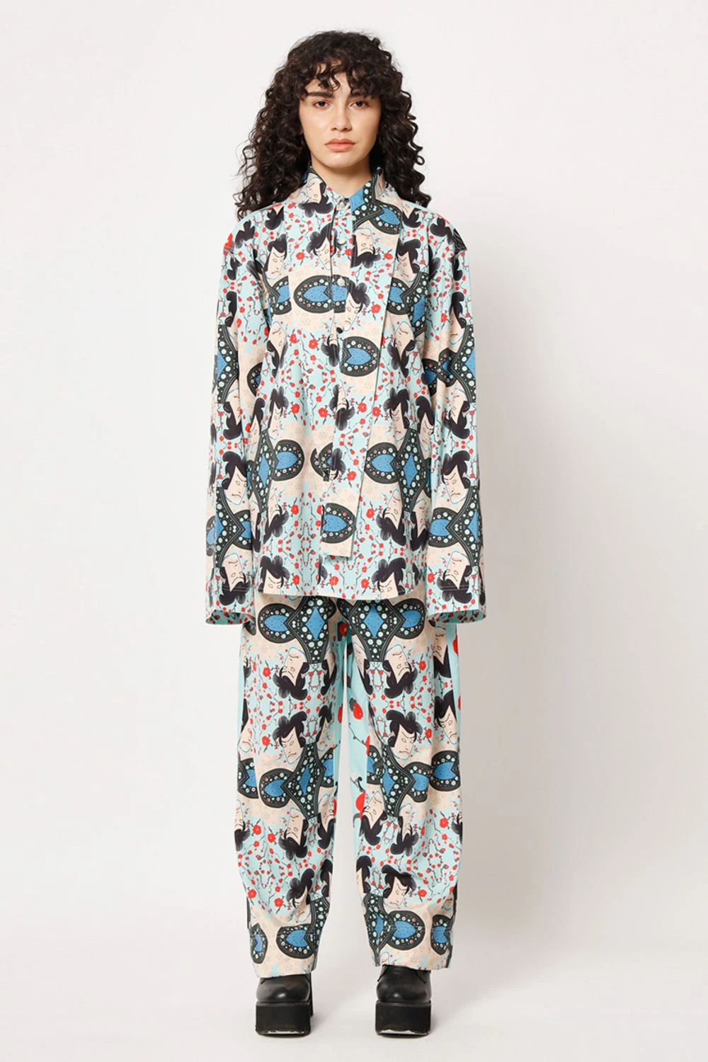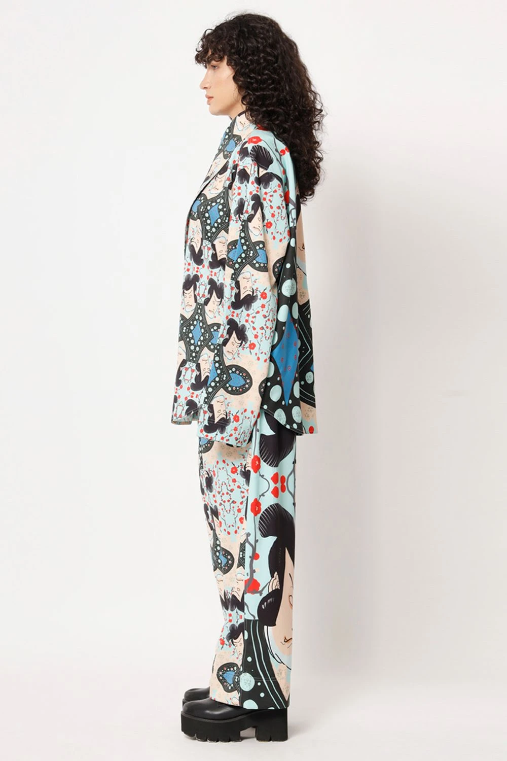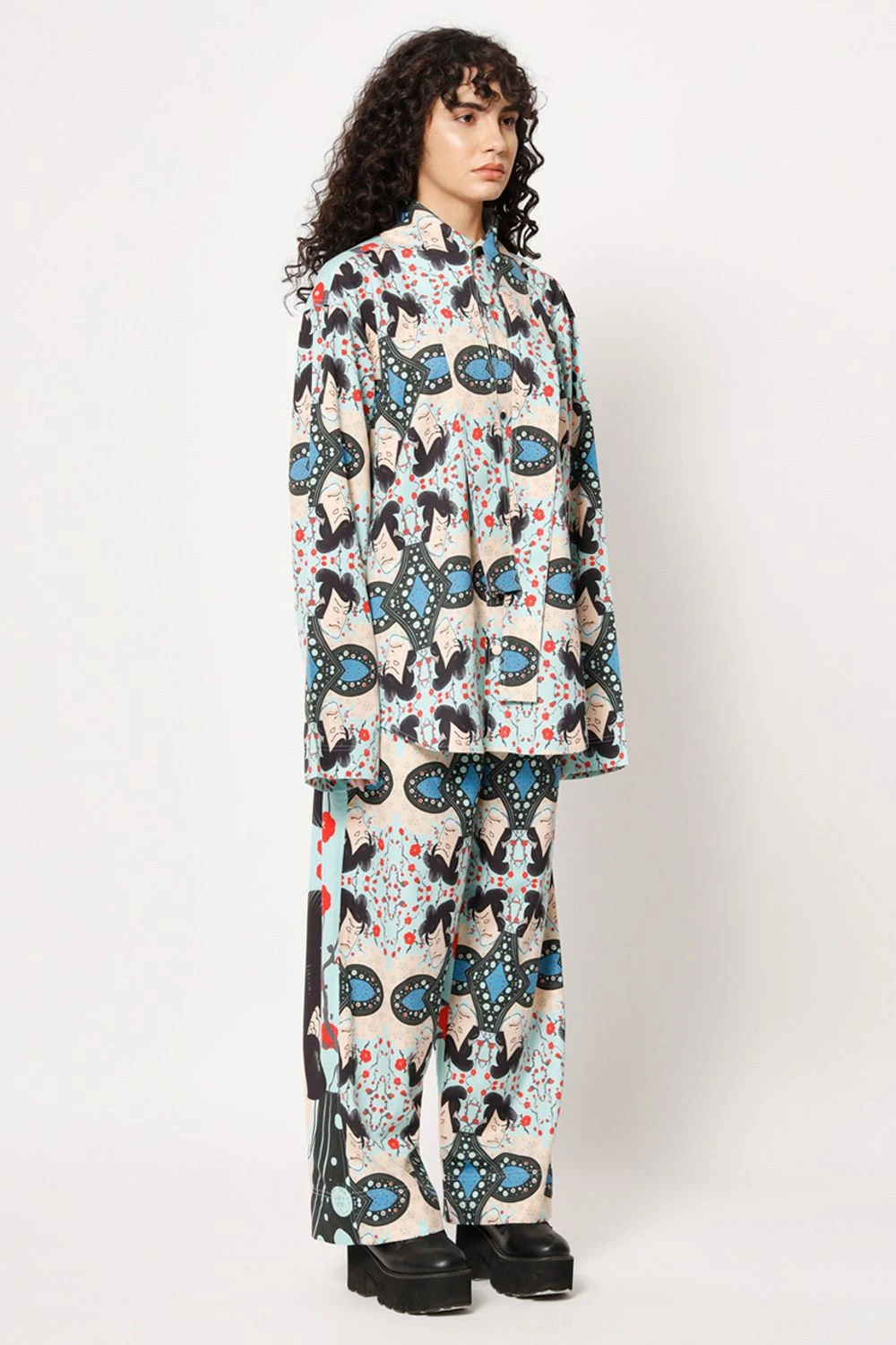 Elevate your casual look with this shirt. The elongated collar adds a touch of sophistication to the overall design. Featuring a captivating digital print with a samurai warrior transformed into a check pattern, this shirt exudes an artistic charm.