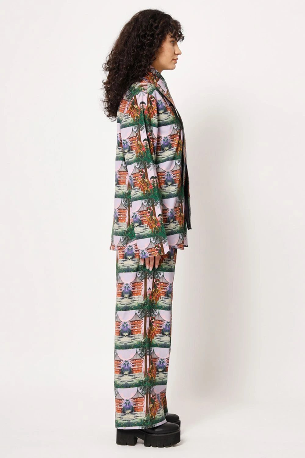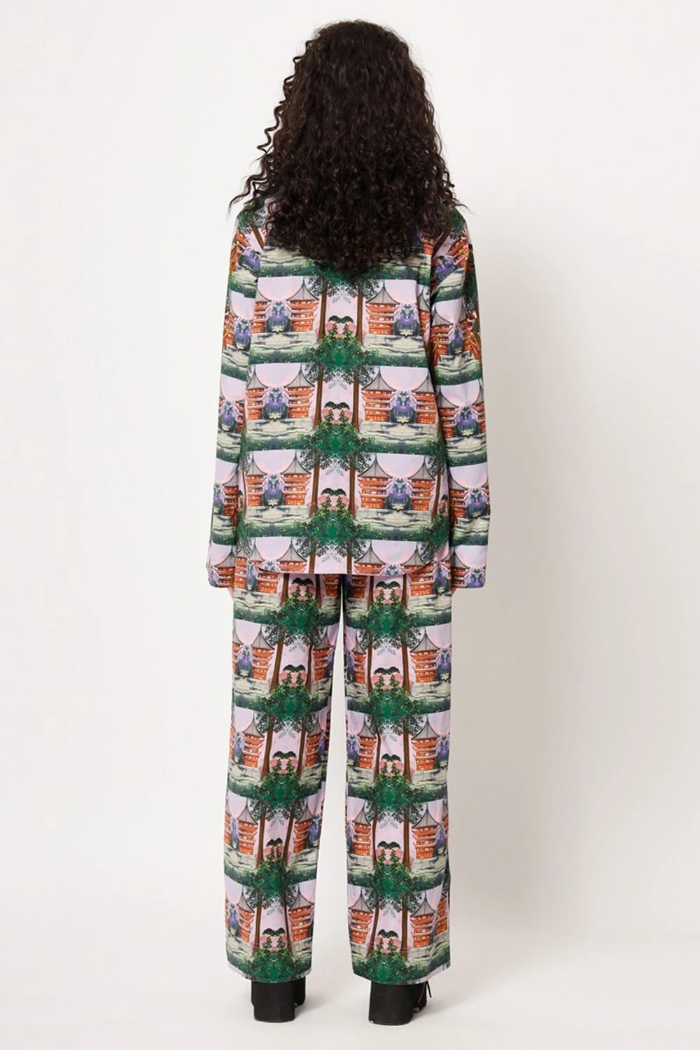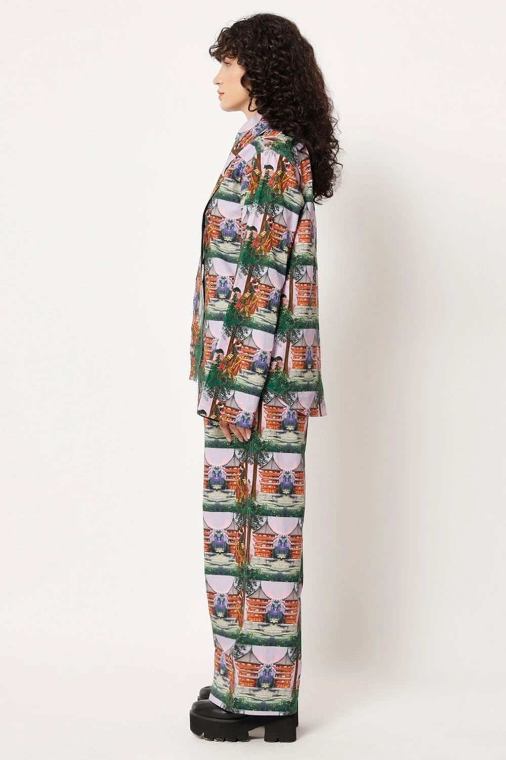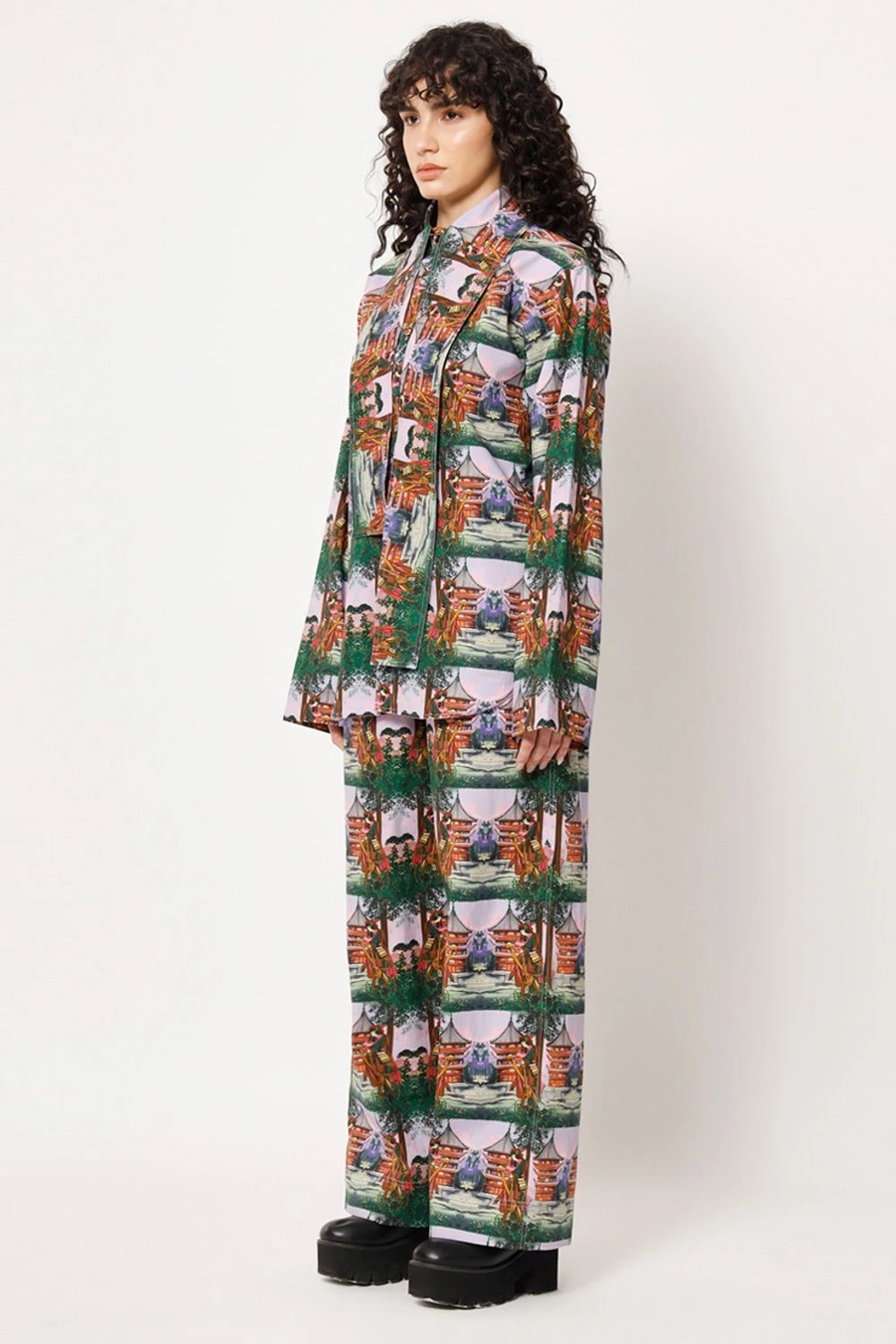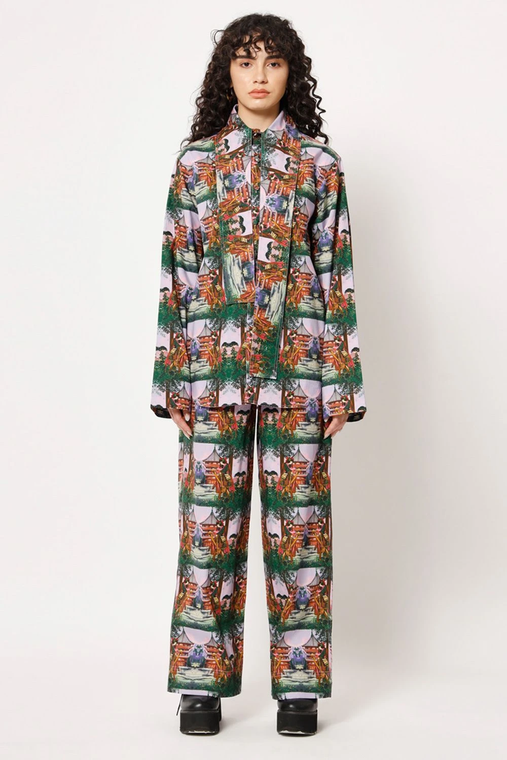 Elevate your casual chic look with this shirt. The elongated collar adds a touch of sophistication to the overall design. Featuring a captivating digital print with a samurai girl transformed into a check pattern, this shirt exudes an artistic charm.
