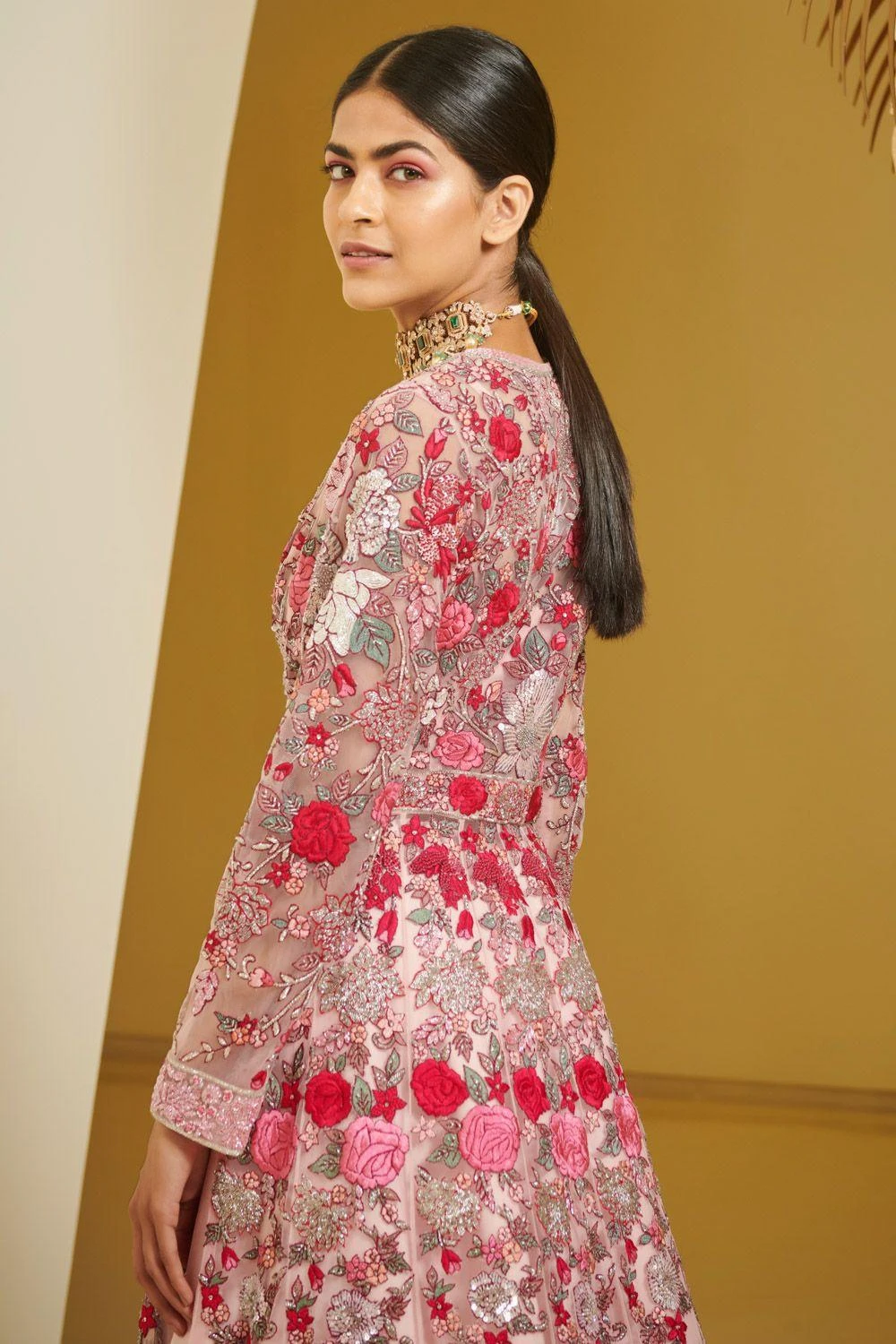 Embroidery : Resham thread embroidery with pearl & cutdana work